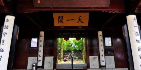 天一阁位于浙江省宁波市海曙区,建于明朝中期,由当时退隐的明朝兵部右侍郎范钦主持建造,占地面积2.6万平方米,已有400多年的历史,是中国藏书文化的代表之作。天一阁是中国现存最早的私家藏书楼,也是亚洲现有最古老的图书馆和世界最早的三大家族图书馆之一。1982年天一阁被国务院公布为全国重点文物保护单位,现为国家AAAAA级旅游景区。2018年10月17日,文化和旅游部对全国9个达到国家5A级旅游景区标准要求,拟确定为国家5A级的旅游景区进行公示,其中,天一阁在列。
