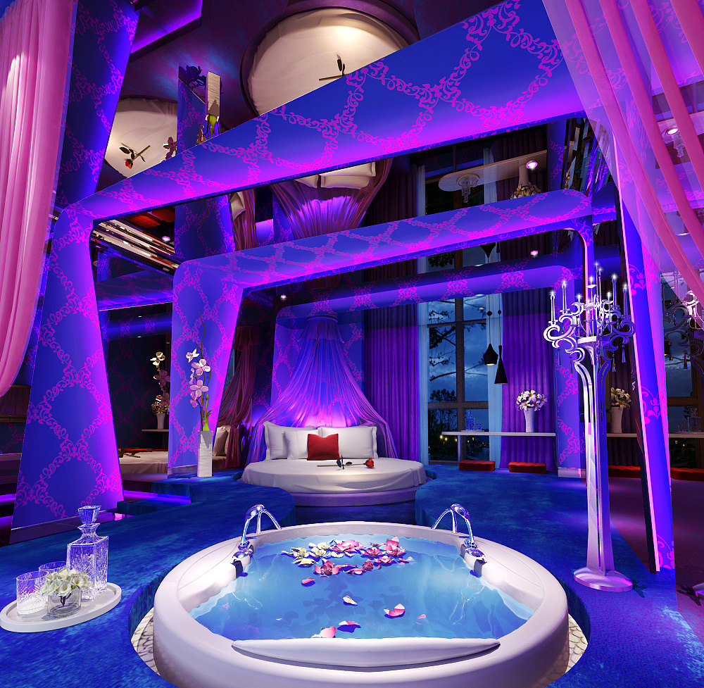 情趣情侣房内有水床与开放厕所