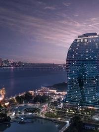 杭州洲际酒店坐落于钱江新城中央商务区,其独特的金球造型不仅成为钱塘江边一道亮丽风景线,更是杭州一新的地标,同时与对面的杭州大剧院形成“日月同辉”。杭州洲际酒店临近地铁四号线和七号线市民中心站,可前往火车站、杭州萧山国际机场、西湖景区及武林商业街区,距离机场直线距离为27公里。杭州洲际酒店拥有384间客房,住客可在房间凭窗眺望浩瀚的钱塘江景;夜晚更可欣赏钱江新城灯光秀和绚丽多姿的音乐喷泉。此外,杭州洲际酒店设置了6间风格各异的餐厅酒吧其中包含自助餐,提供粤菜及杭帮菜的中餐厅,高档西餐厅,德国啤酒屋等以及30多个格调别致的会议室和顶层游泳池。