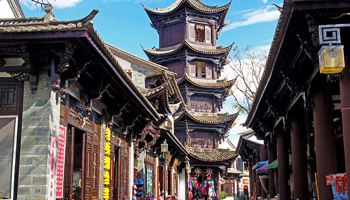 大理古城东侧,青葱的苍山脚下,湖泊蔚蓝,以山水美景和独具风情的各个村镇而闻名于世,是大理四大名景之一。